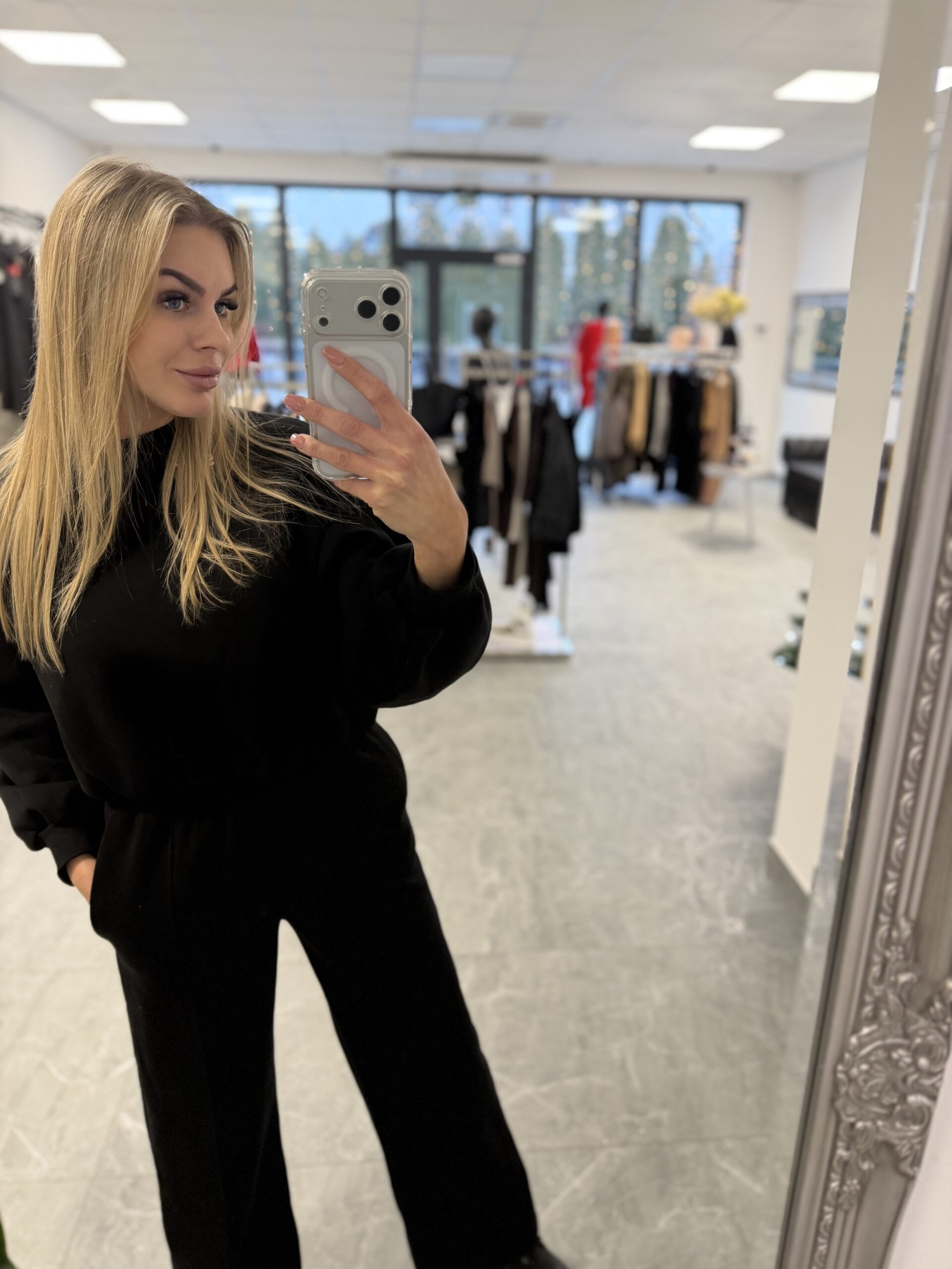 Świetny komplet dresowy składający się z bluzy, oraz szerokich spodni.